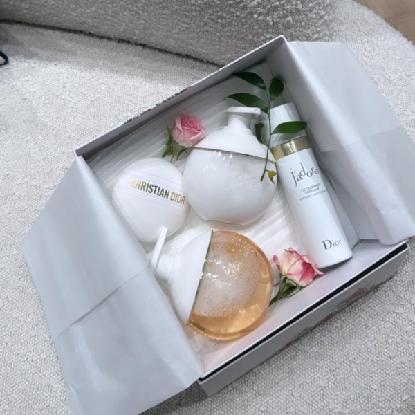 J'ADORE EAU DE PARFUM INFINISSIME + J'ADORE LES ADORABLES BODY MILK + كريم J'ADORE LES ADORABLES لليدين والأظافر وأعلى الصدر + جل الاستحمام J'ADORE LES ADORABLES