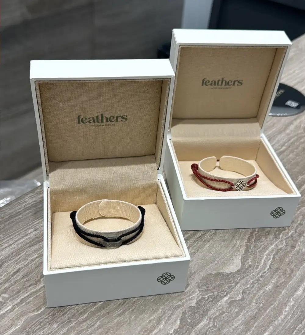 أساور فيذرز الخيطية تتميز بتصميمها البسيط والأنيق، حيث تتكون من خيط ناعم قابل للتعديل، مما يجعلها مريحة وسهلة الارتداء يوميًا. تأتي بتفاصيل ذهبية أو فضية صغيرة، غالبًا على شكل ريشة، والتي تضيف لمسة من الرقي والبساطة. يمكن ارتداؤها بمفردها أو مع عدة أساور أخرى لإطلالة عصرية وجذابة.
