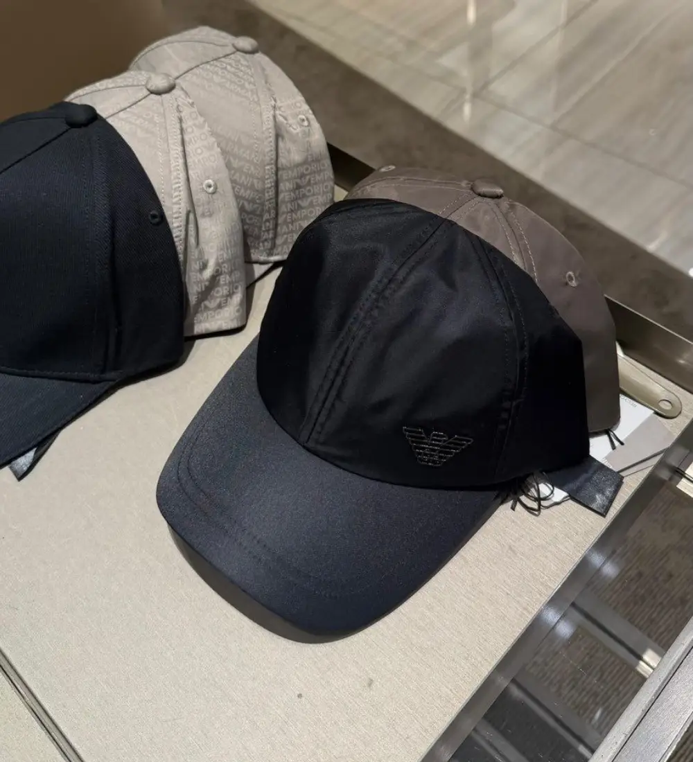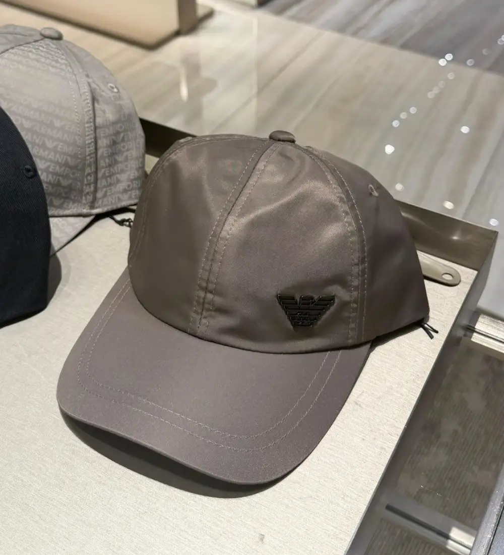 كاب أنيق من تصميم Armani بلمسة عصرية وناعمة، مصنوع من خامة ساتان فخمة تعطي لمعة خفيفة وإحساس راقي. يتميز بشعار النسر المعدني الأمامي بتفاصيل دقيقة تضيف فخامة للقطعة