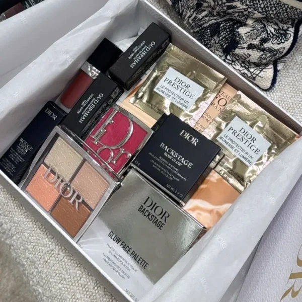 يتكوّن بوكس ديور من روج درجة 200 الكلاسيكية، وبلشر وردي ناعم يعطي لمسة حيوية للخدود، بالإضافة إلى هايلايت فخم يمنح لمعة مشرقة وطبيعية. بوكس أنيق ومثالي لمحبات الميكب الراقي.
