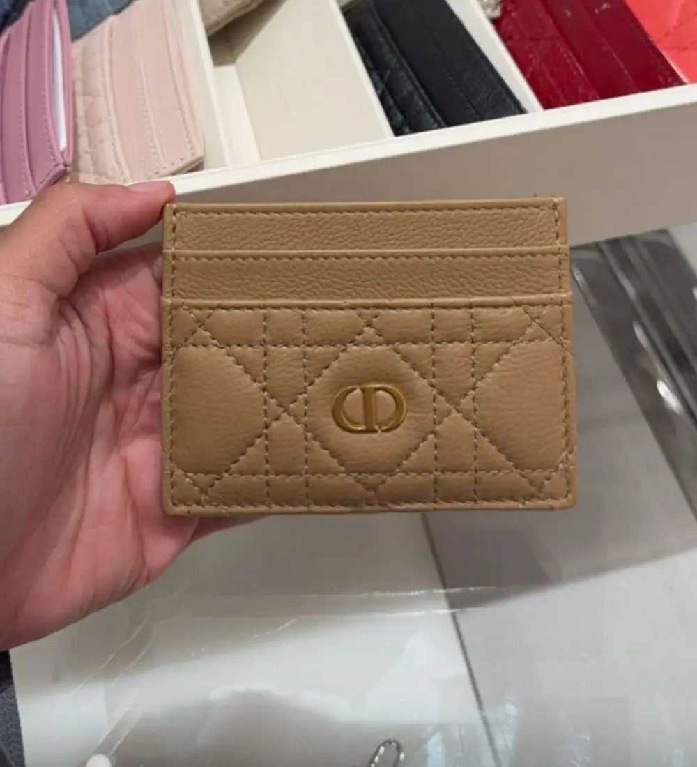 قطع أنيقة مصنوعة من جلد فاخر بنقشة Cannage المبطنة، ومزينة بشعار CD الذهبي الأيقوني في المنتصف. تصميم عملي بخطوط نظيفة وفتحات متعددة لتسهيل ترتيب البطاقات