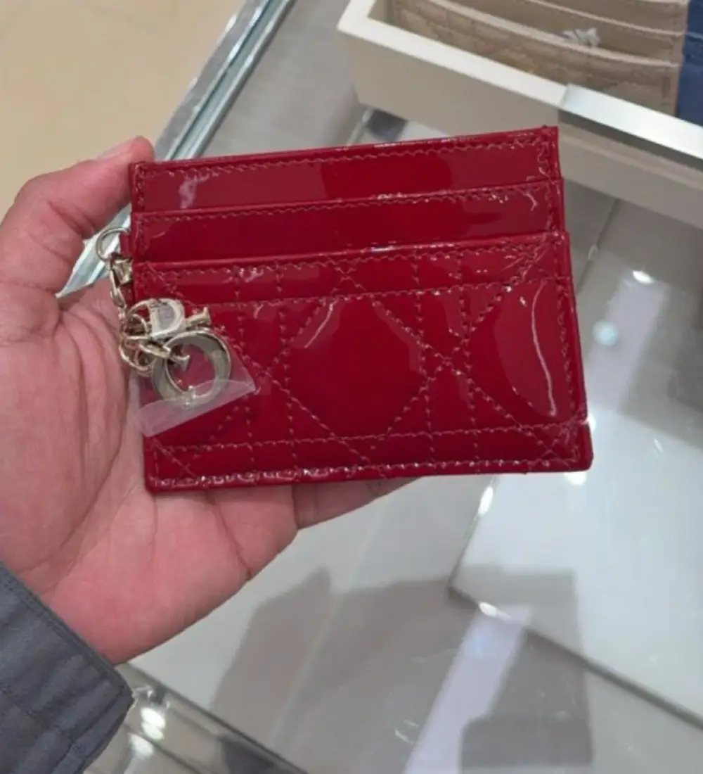 حافظة بطاقات ديور – لمعة الأحمر الملكي