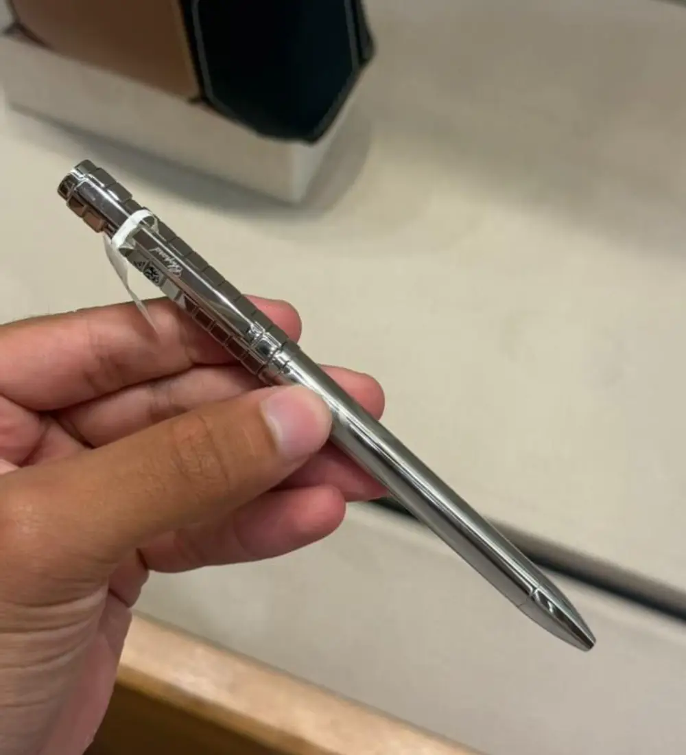 This ballpoint pen features a stainless steel design, combining sophistication and high quality, providing a comfortable grip and a smooth, precise writing experience. Its cap is adorned with the iconic Ice Cube motif and the Chopard logo, adding a touch of refinement and elegance to this contemporary instrument.
