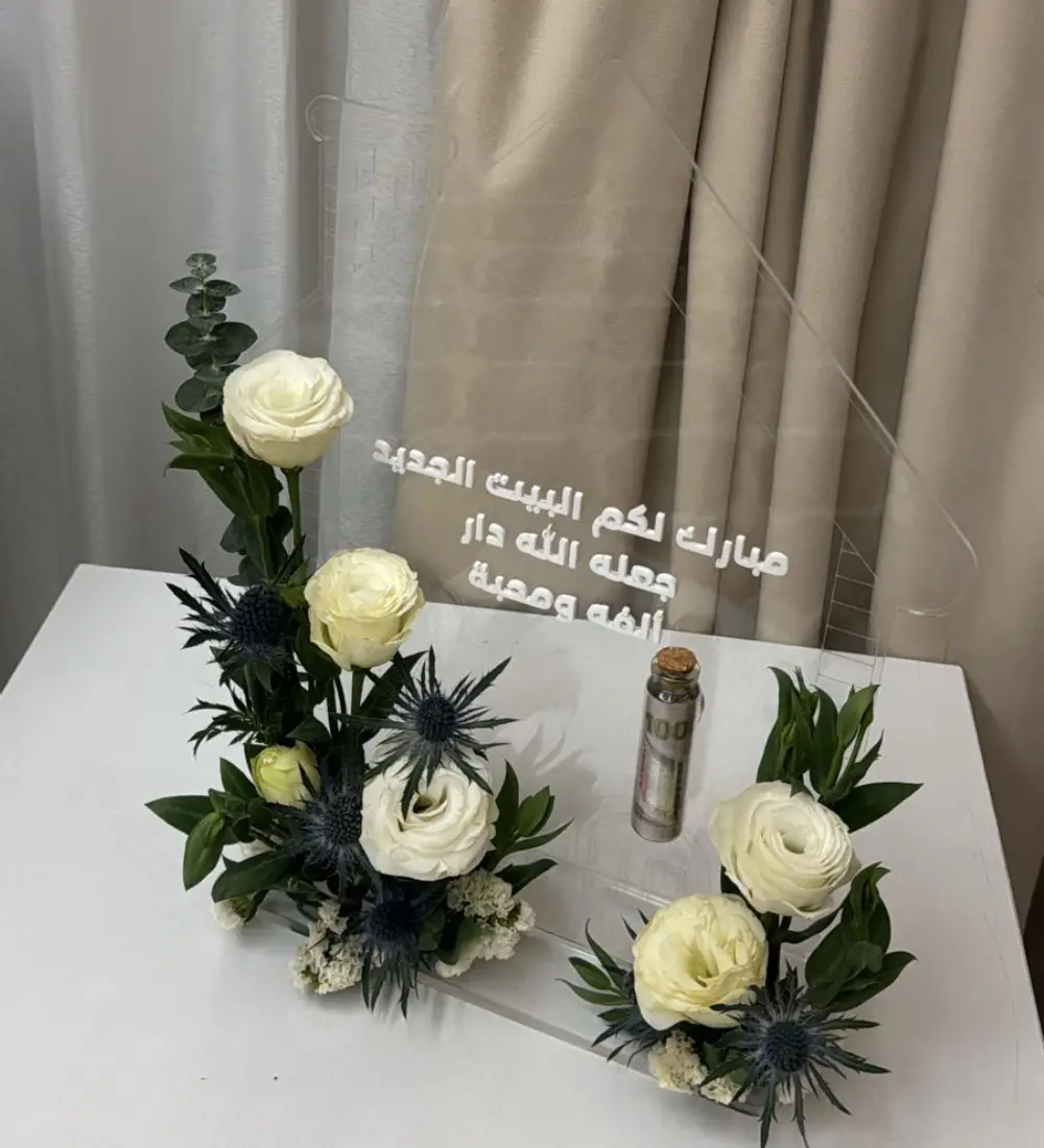 A luxurious arrangement combining the elegance of white roses with a distinctive, sophisticated touch, set within a refined black base with green details that evoke a natural and elegant feel. An ideal gift for occasions and celebrations, conveying a message in a stylish and unique way.