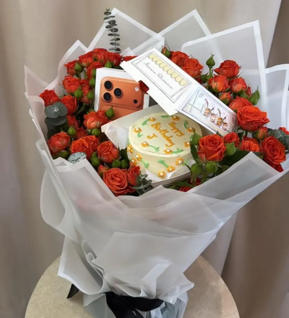 A luxurious arrangement combining the charm of natural roses with the allure of a sophisticated Apple gift. A simple yet elegant design, perfect for special occasions, reflecting refined taste in every detail. 🌸✨ Ideal for special occasions, graduations, or memorable surprises.