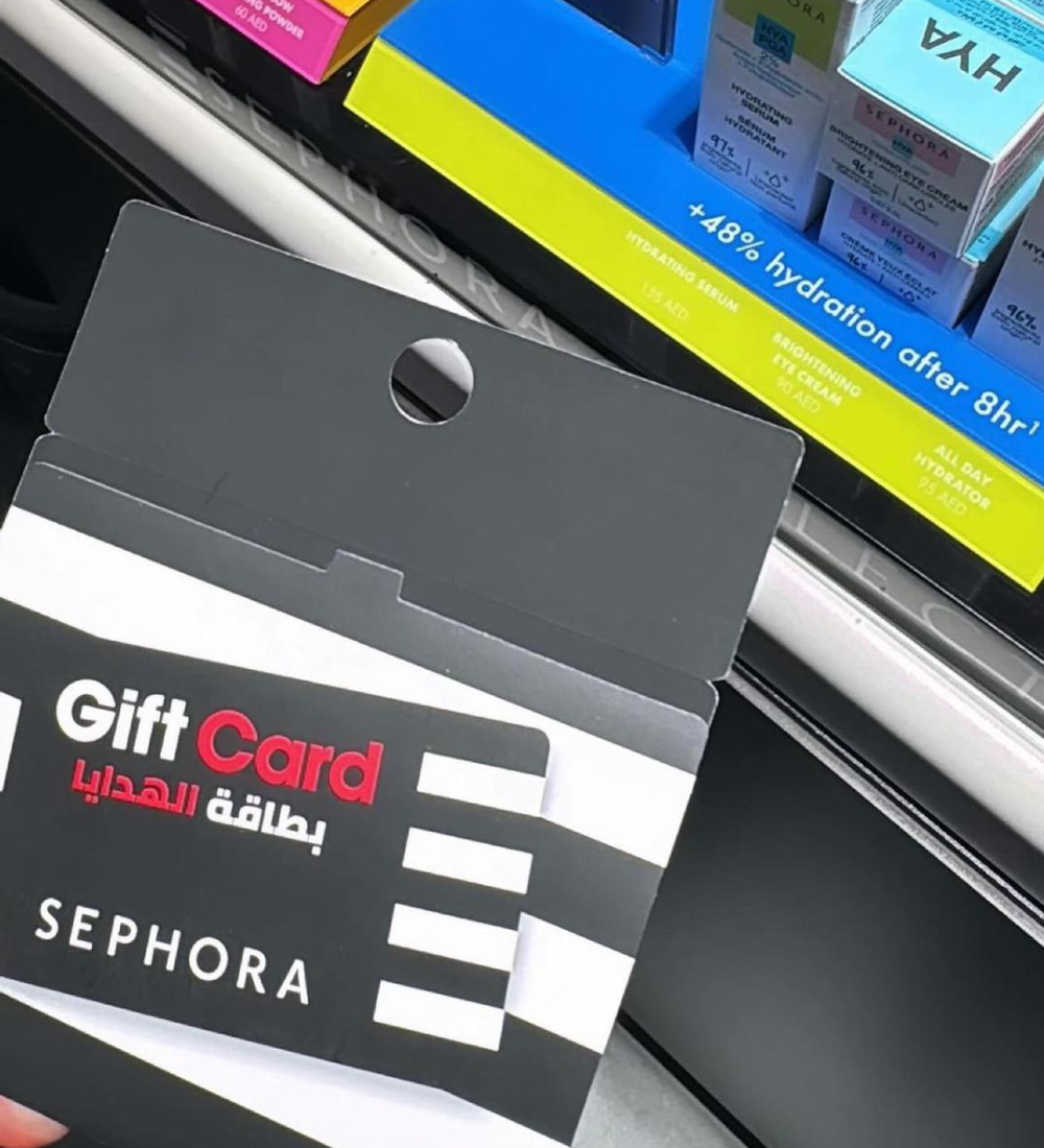 A gift card from Sephora worth 500 dirhams with simple coordination