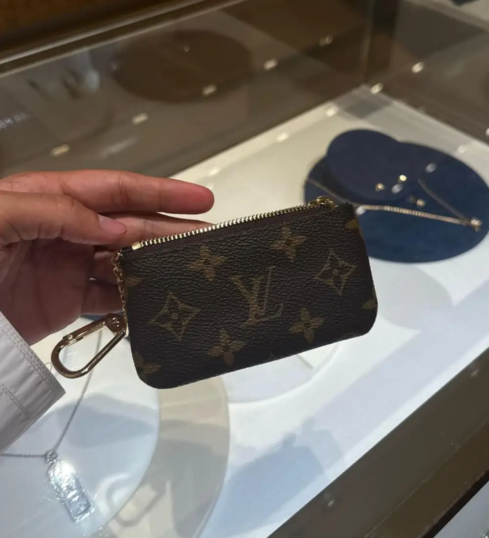 Practical and fun, it holds coins, cards, banknotes, and keys. It features an LV-engraved zipper and can be attached to bags or worn as a chain.